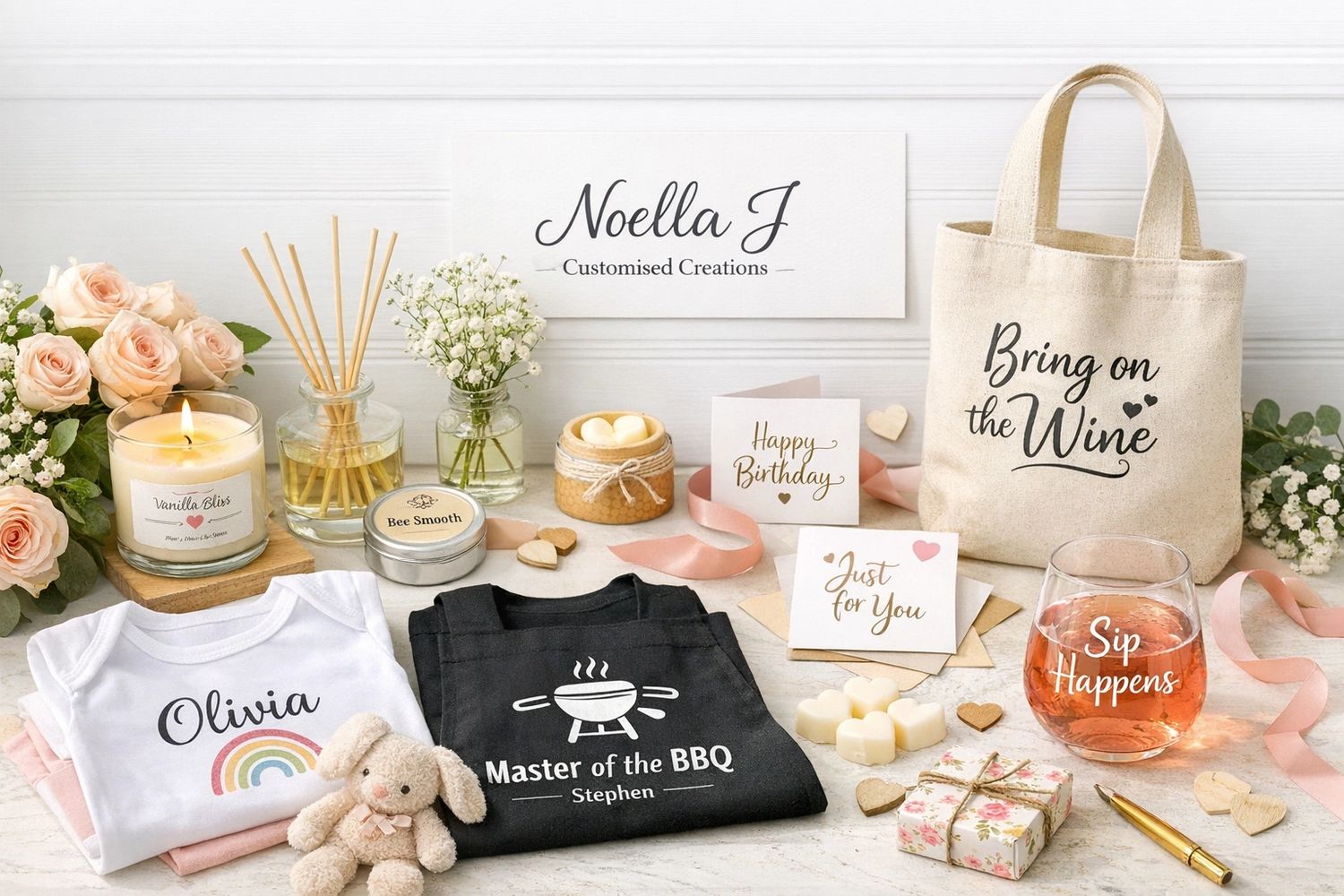 Welcome to Noella J Customised Creations, where thoughtful design meets handmade charm. We create beautifully crafted soy candles, wax melts, reed and car diffusers, and nourishing beeswax lip balms—each made with care and attention to detail. Alongside our home fragrance range, we specialise in personalised gifts that bring smiles, from customised baby onesies and kids’ T-shirts to canvas wine bags, aprons, and stemless wine glasses featuring witty, humorous sayings. You’ll also find our collection of handmade cards, perfect for adding a heartfelt touch to any occasion. Whether you’re shopping for a unique gift or something special for yourself, Noella J Customised Creations is all about celebrating moments with creativity, warmth, and a little bit of fun. ✨